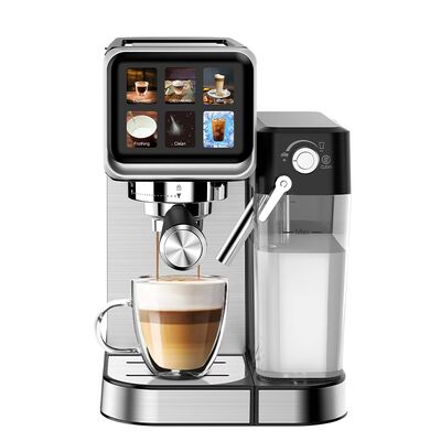 Bu ile üstün sıcaklık stabilitesini deneyimleyin20 Bar otomatik kahve makinesi özellikli çift kazan teknolojisi ve soğuk demleme yıl boyunca kahve keyfi için yeteneği. 1350W gücü hızlı ısınma sağlarken, TFT dokunmatik ekran renkli menü ile NTC sıcaklık kontrolü sezgisel kullanım ve hassas sıcaklık yönetimi sunar. 1L su tankı ve 700ml süt tankı sık sık doldurmadan birden fazla fincan sağlar. ayarlanabilir öğütücü ayarları, optimum ekstraksiyon için öğütme boyutunu özelleştirebilirsiniz.